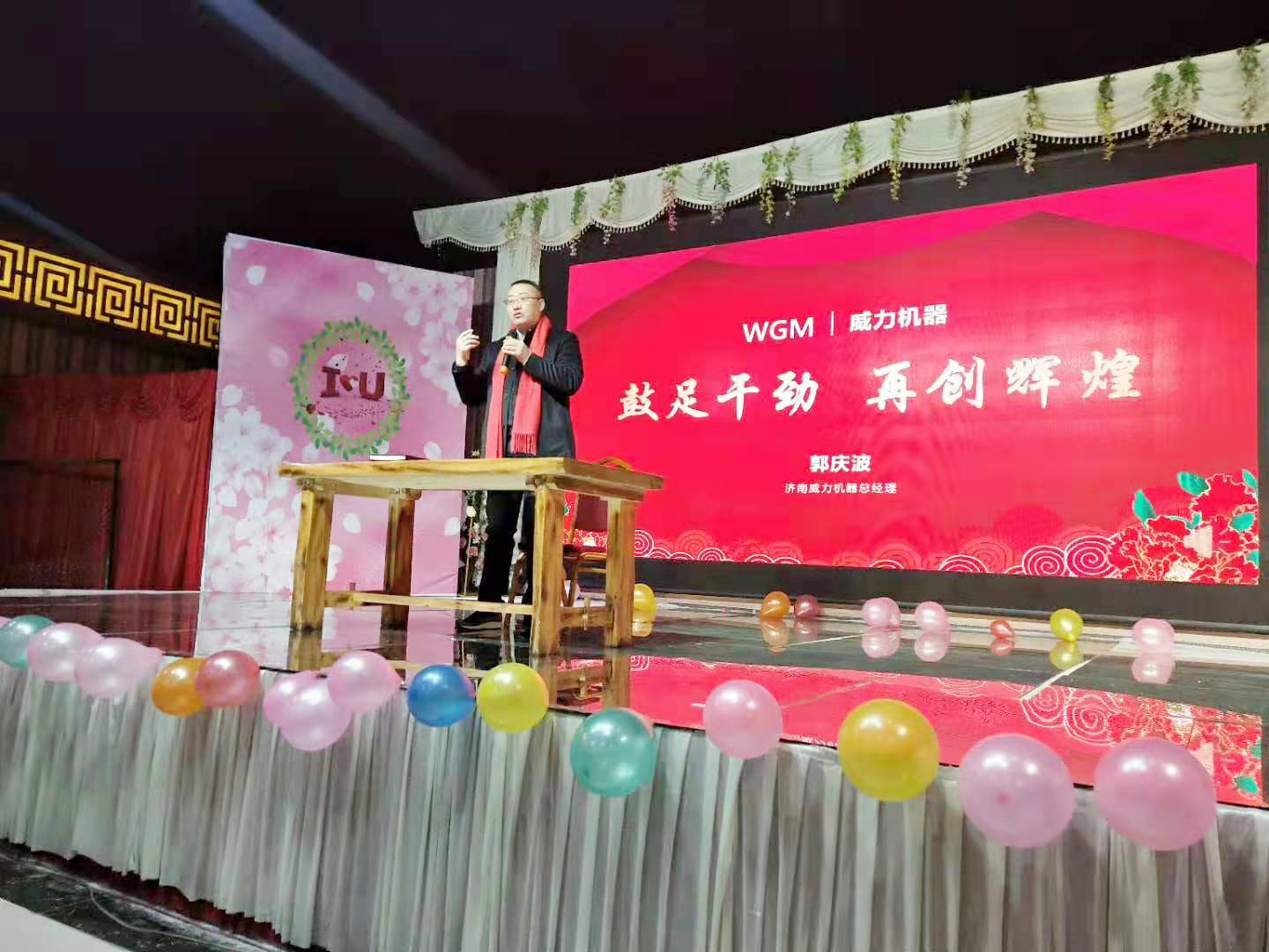 公司董事長郭慶波在會上發表演講,希望公司全體員工向先進工作者看齊,學習他們的工作作風,不斷提升個人價值,以飽滿的工作熱情和信心迎接新的一年!