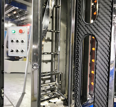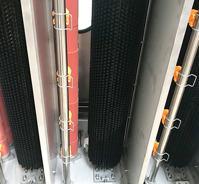 2、4對高溫尼龍絲毛刷,由4個異步電機單獨驅動,4對毛刷進行清洗,高壓水噴嘴可拆卸清洗,易于維護。