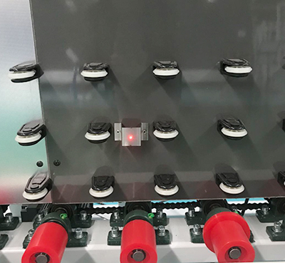 4、自動張緊壓緊傳送輥,清洗不同厚度的玻璃自動調整,采用無油不銹鋼防水軸承,與水接觸部位采用不銹鋼、鋁或銅,使用壽命長;清洗段末端玻璃上下兩面各有一片軟質材質刮水板,玻璃在兩刮水板之間通過。